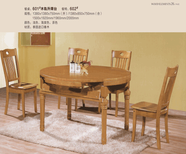 圆台一桌配六椅橡木餐台椅
